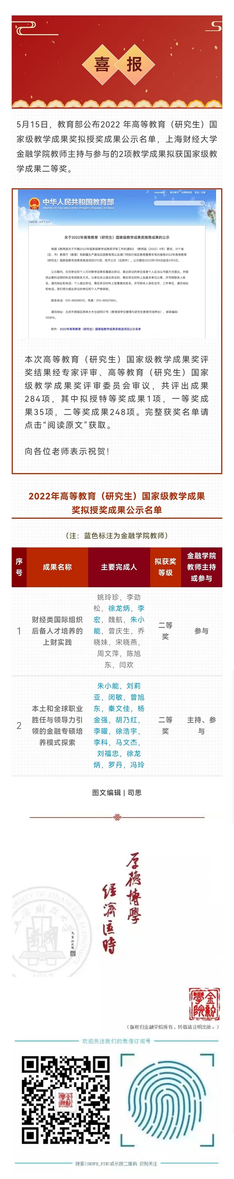 喜报 | 金融学院教师主持与参与的2项教学成果拟获国家级教学成果二等奖