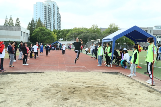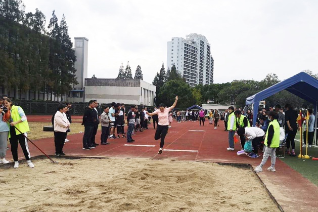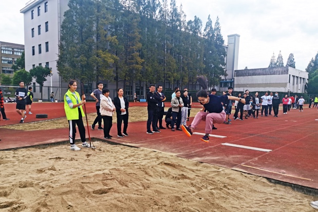 当天下午,在武东路校区的大操场上,运动健儿们在大会组织者紧张有序的播报声中热身上场,纷纷在各个体育竞技项目中展开激烈的角逐。