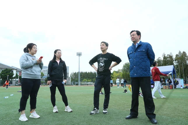 除了运动员外,叶蕾、洪小君、彭伟等老师也在赛场奔波,做好服务工作;柳永明、刘莉亚等学院领导莅临现场指导、助威;张溢宁、李珩、姚佳玥、贲小莲、金洪飞、赵学林等老师也来为运动员们加油。