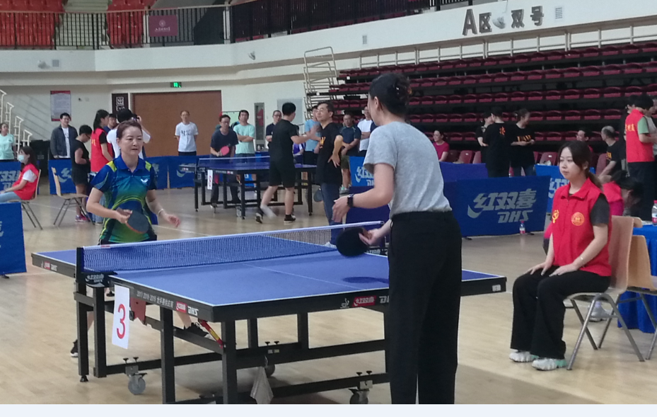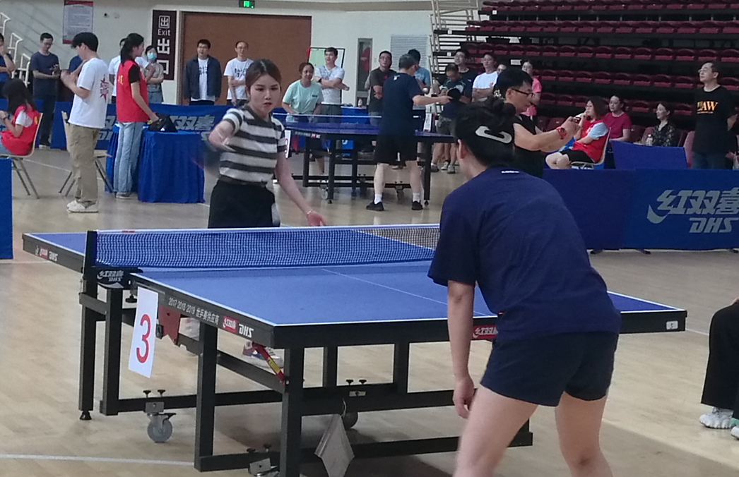 注入新生力量,今年我院引入李宏与王绚两位乒乓高手,整体实力大大增强;四是比赛中做好后勤保障,工会主席与周洁琼、王学宽、张燕、王亚纯、张月、李书华、洪小君、章秩新等老师组织好食品供应,拉拉队到场为参赛选手加油,鼓舞了士气!