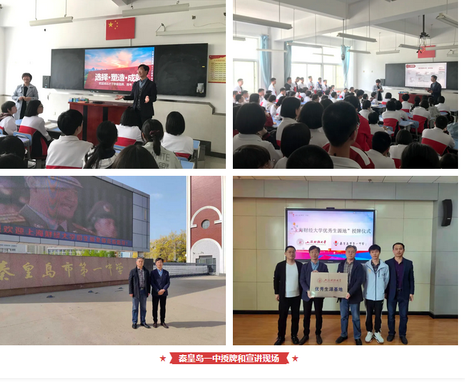 4月27日,我校两位老师来到唐山一中、秦皇岛一中进行座谈和授牌,唐山一中副校长佘念利、招生办主任杨伟,秦皇岛一中副校长刘平等分别介绍两所学校的办学历史、新时代教育改革、校园建设与发展成就等,并希望以此为契机,加强与大学的合作交流,为社会输送更多品学兼优的高素质人才。我校宋兵超老师详细介绍了上海财经大学相关情况,并分别为两校高三学子们做了招生宣传讲座,全面介绍了上财在河北的招生情况,以及学校人才培养、学科优势、就业质量情况等,鼓励高三学子们报考上财,感受多元培养模式,体验九维成长空间,成就卓越财经梦想。在宣讲结束后,两位老师耐心细致回答高三学子们的提问和疑惑,进一步带领大家感受上财特色、了解商学文化,全场气氛积极活跃。