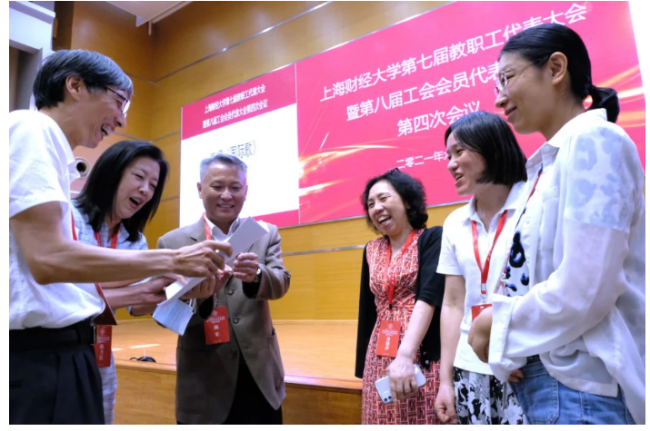 6月22日下午,金融学院双代会代表们认真听取了各小组的交流发言,并对第七届教职工代表大会决议与第八届工会代表大会决议进行了表决,下午16:00在雄壮的国际歌声中代表们顺利完成了各项任务。