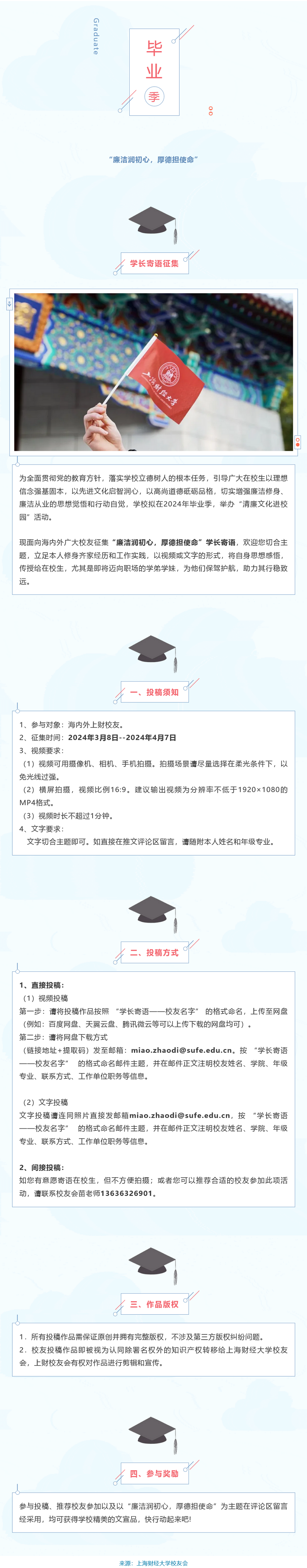 校友寄语征集令 | 毕业季“廉洁润初心,厚德担使命”学长学姐寄语征集活动邀你参加