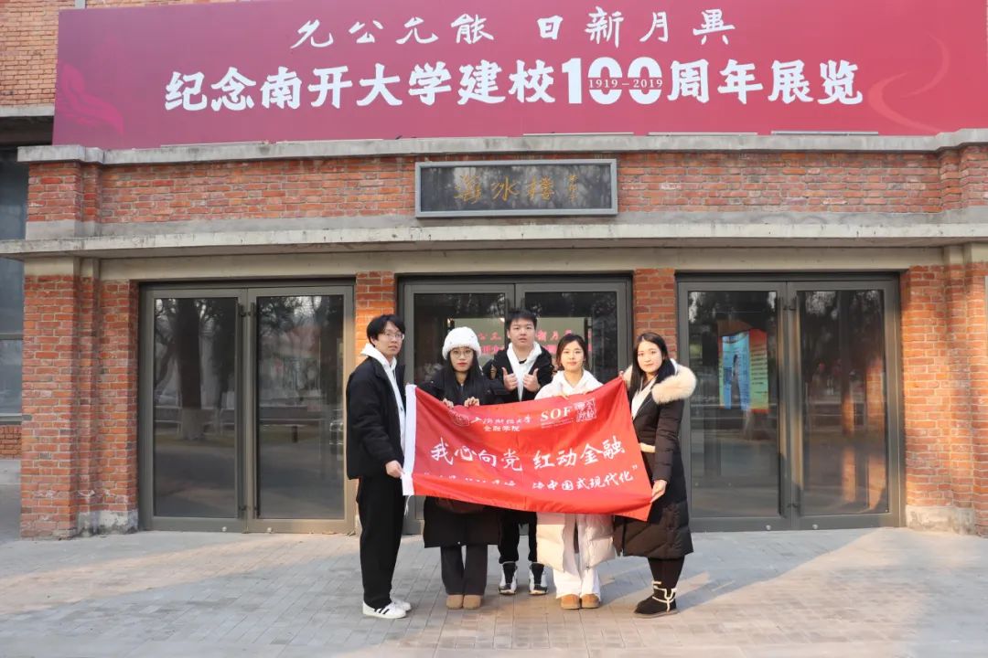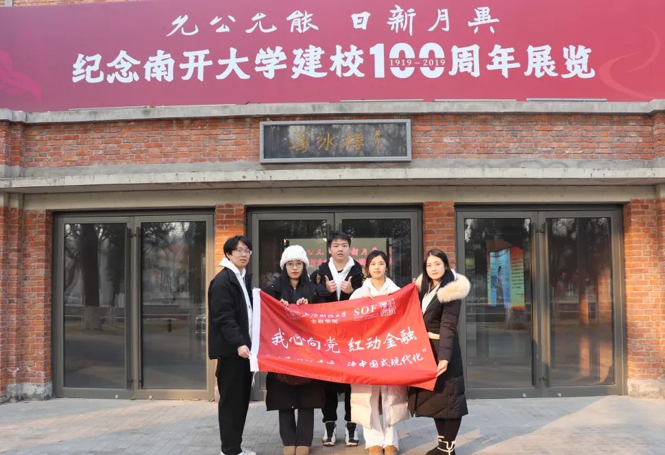 △在南开大学“爱国奋斗 公能日新”校史主题展览门口合影