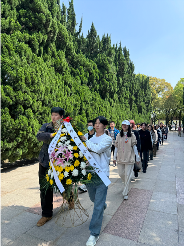 四月春回大地,龙华烈士陵园松柏苍翠,草木葱茏,氛围庄严肃穆。师生党员们怀着崇敬和沉重的心情整齐列队,跟随花篮缓缓步入陵园,每一步都充满了对革命先烈的深深敬意。在纪念碑前,进行着祭扫仪式,大家肃立默哀,向为国家和民族付出生命的英雄们表达最崇高的敬意,同时敬献花篮,寄托师生党员们对先烈们最深沉和无限的哀思。