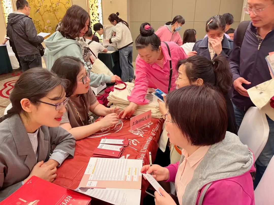 招生老师们通过现场发放招生宣传资料,与家长面对面交流,为前来咨询的考生及家长详细介绍了上财的财经特色、学科排名、就业优势、往年录取分数及报考事项等,并邀请高三生家长加入上财山西本科招生QQ咨询群,便于后续交流。
