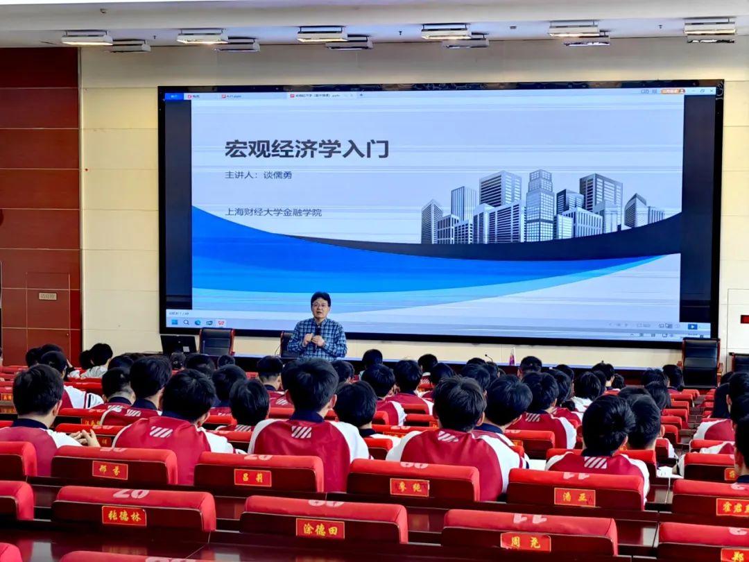 谈儒勇老师从“什么是经济”“什么是金融”入手,深入浅出地介绍了经济学理论和金融工具在实际生活中的应用,使大家对经济、金融概念拥有了初步的了解;通过阐述“推进经济高质量发展,加快建设金融强国”和“金融是实体经济的血脉”的内涵外延,他又从宏观层面突出了国家对于经济工作和金融工作的重视;谈老师鼓励同学们在学习之余要多关注“窗外的世界”,随后介绍了宏观经济学的入门知识,进一步引发同学们对财经专业学习的兴趣。
