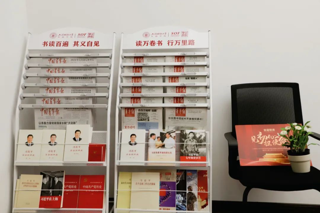除了有精彩的“院长书单”外,学院还设立了“党团报刊读书角”,这里有《青年报》《中国青年报》《中国青年》等团支部必读报刊和杂志,更有《习近平谈治国理政》(第一、二、三、四卷)《习近平的七年知青岁月》《当好改革开放排头兵:习近平上海足迹》《习近平关于金融工作论述摘编》等重要书籍,还有《党章》《团章》等必备书目。读书角面向全院师生开放阅读借阅,让大家在红色经典与前沿动态中汲取精神力量。