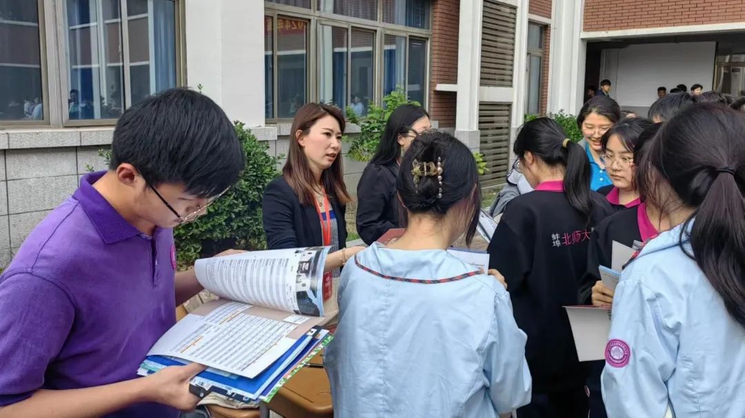 下午,招生小组赶赴蚌埠京师实验高级中学,通过参加高校高中座谈会、发放宣传材料和面对面咨询等方式,向学校的领导老师、学子和家长们介绍了上海财经大学的办学特色、就业优势及招生情况,初步建立起上财与北师大蚌埠附校之间的友好联系。