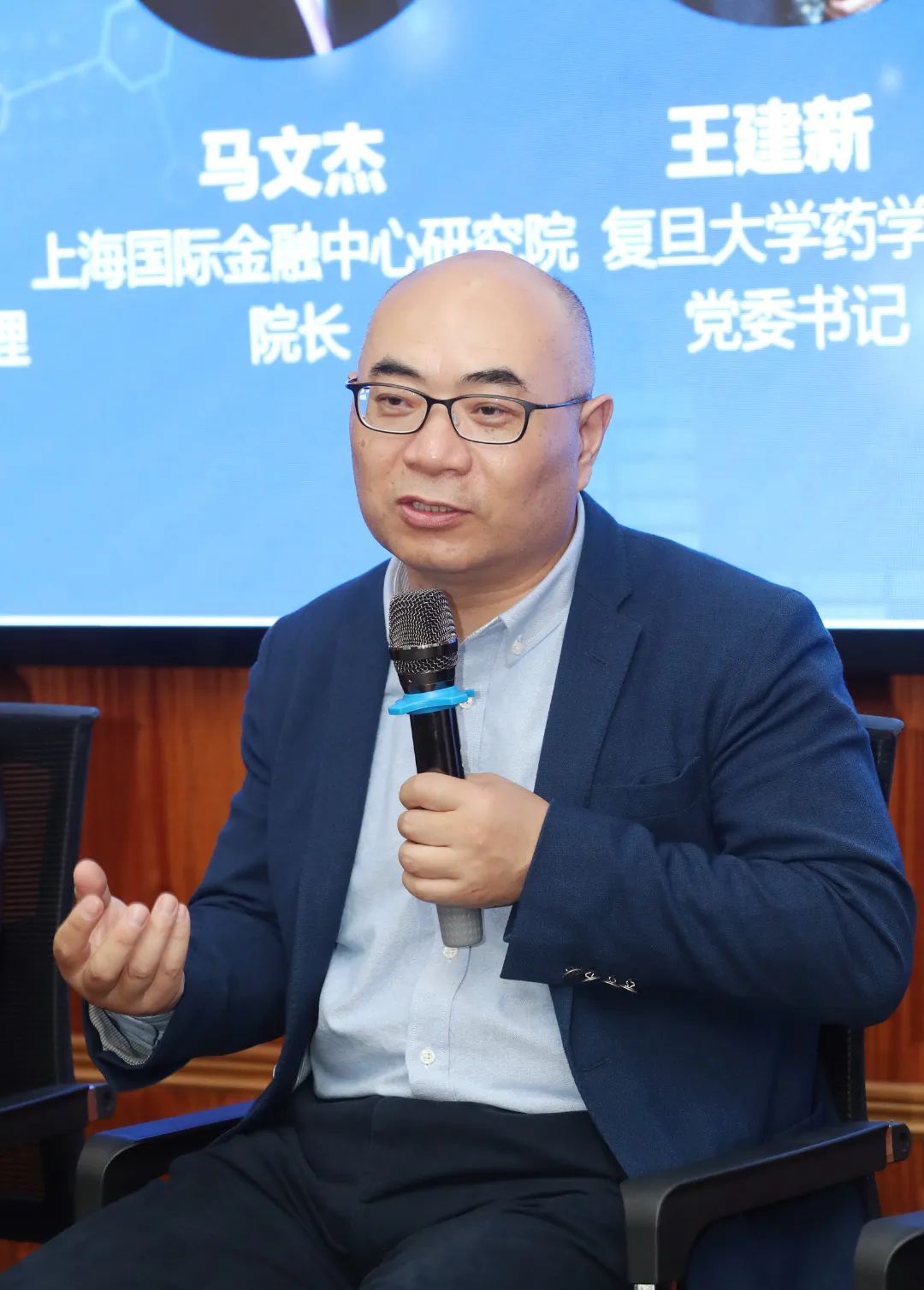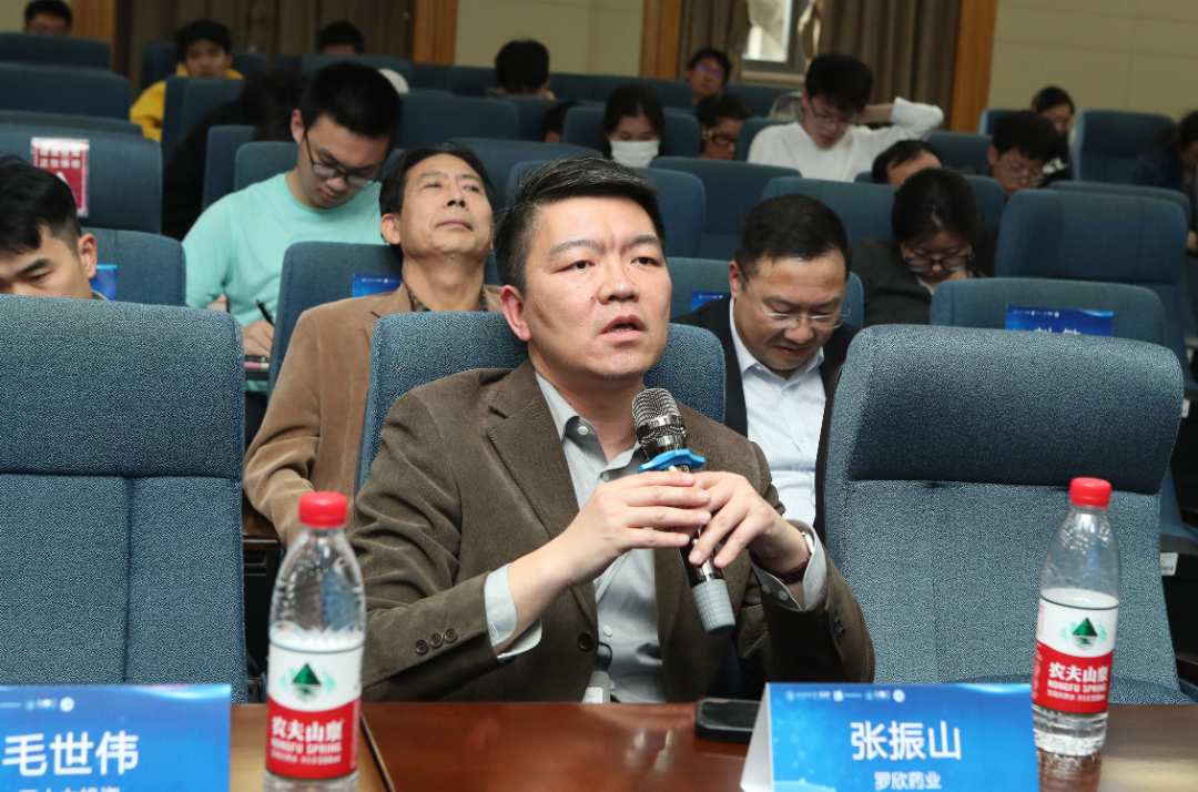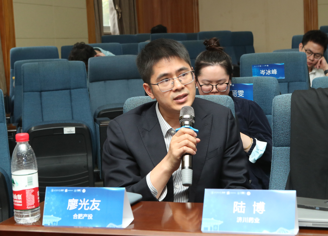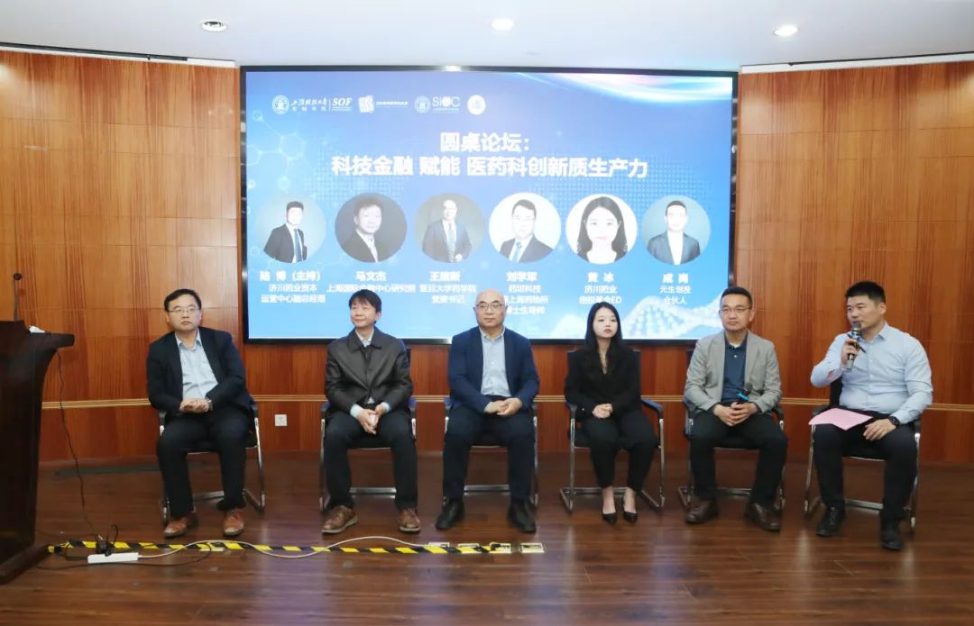 上海国际金融中心研究院院长马文杰教授、复旦大学药学院党委书记王建新书记、药坦科技代表、原上海药物所博士生导师刘学军教授、元生创投合伙人成岗、济川药业创投基金代表黄冰参与讨论。各位嘉宾围绕着当下投资和服务高校科研院所的孵化项目转化的大体标准以及在科技金融支持和服务这些高科技、高风险、高不确定性的孵化项目的痛点、卡点展开了广泛的探讨并发表各自的感想,最后各位嘉宾对科技金融类的创新资本来支持医药创新研发的展望提出了想法和建议。