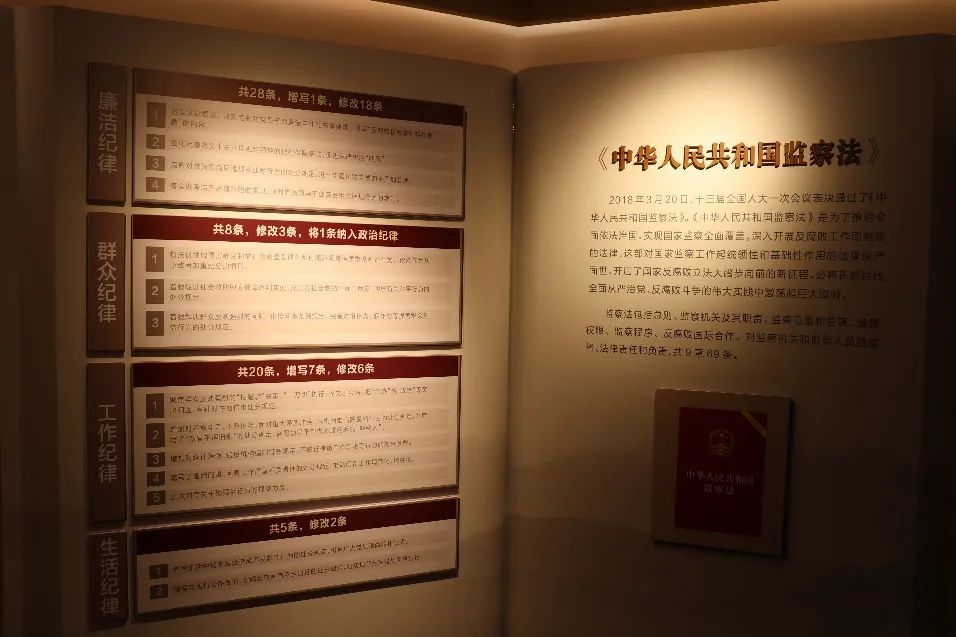 师生党员随着讲解员的介绍,依次参观了各主题展馆。正气馆展示了廉政名士的生平事迹、廉政历史文化的载体——碑刻和匾额、名人名士的优良家风;学习馆介绍展示了党规党纪和法律法规,展出了新修订实施的《中国共产党纪律处分条例》,特别对增写和修改的内容作了介绍;实践馆介绍了纪委监委近年来的工作成果。