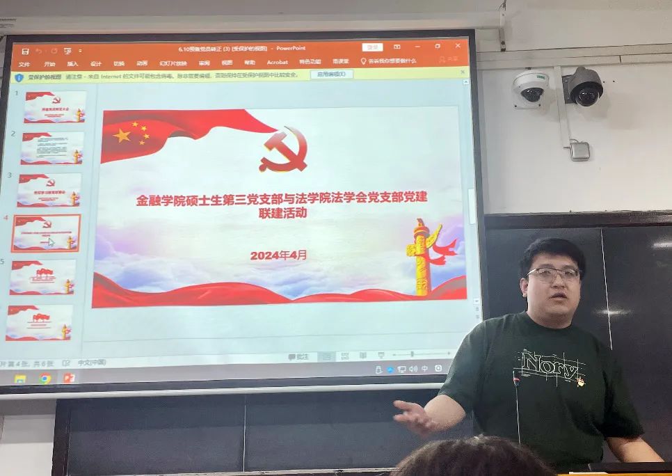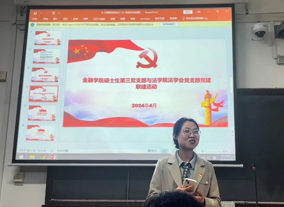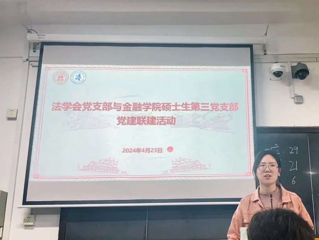 为深入学习贯彻习近平新时代中国特色社会主义思想和党的二十大精神,巩固拓展主题教育成果,加强党员理想信念教育,促进校内各学院之间的党建联建,2024年4月23日晚,上海财经大学金融学院硕士第三党支部与法学院法学会支部举办了党建联建主题分享会,本次活动以党建联建为契机,发挥专业优势,加深学科交流,在公益志愿等方面挖掘合作机会,以党建带团建,共促两院学生工作,丰富两院学子校园生活。