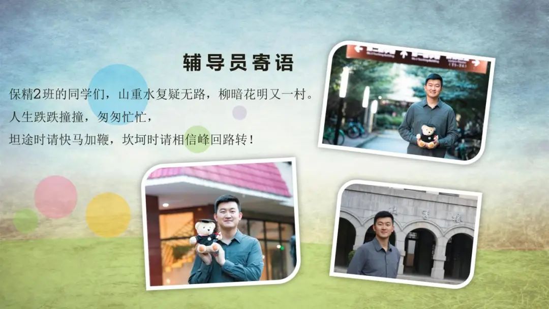 保精2班的同学们,山重水复疑无路,柳暗花明又一村。人生跌跌撞撞,匆匆忙忙,坦途时请快马加鞭,坎坷时请相信峰回路转!