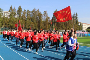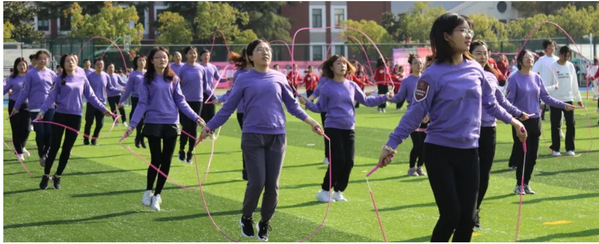 开幕式上,各学院及职能部门师生为大家带来了令人炫目的花样跳绳表演。在我院工会主席叶伟春老师的带领下,张月、张琪、王亚纯、秦文佳、范一舟等六位老师踊跃参加,利用休息时间进行了多次排练,为开幕式奉献了富有韵律感和动感的表演。