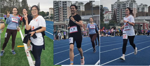 在校运会单项比赛中,我院老师也挥洒汗水,奋力拼搏,取得骄人战绩。其中:张琪老师在青年女子组800米项目中一举夺得冠军,并在60米项目中获第6名;岑冰峰老师在青年女子800米、女子铅球两个项目中斩获2枚银牌;叶伟春老师在中年男子跳高、跳远两个项目中均夺得第2名;马晗老师在青年男子组1500米项目中夺得第5名;司思老师在青年女子组跳远项目中获第7名,在女子60米项目中获第8名;金洪飞老师在中年男子铅球项目中获第7名。