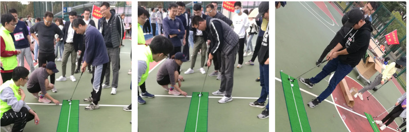 在上午举办的集体竞赛项目中,踢毽子比赛由冯玲老师领队,陈选娟、刘方舟、张盛丽、王学宽、章轶新、王晓含老师参加,快乐五子棋比赛由王昕程老师领队,李书华、井雨洁、刘丹丹、庄凌泽、金桐老师参加。下午举行了投掷飞镖与高尔夫推竿两场趣味团体赛,在王昕程、冯玲两位老师带领下,金凤祥、章轶新、张晓迪、张琪、王学宽、王乃一老师参加了比赛。为备战集体项目,教工们牺牲了许多休息时间,刻苦练习;在比赛中参赛老师充分发扬拼搏与协作精神,最后取得了不错的成绩。在十五支参赛队伍中,我院踢毽子与高尔夫推竿团体比赛获第6名,飞镖比赛获第7名,王晓含老师还获得男子个人踢毽子奖。