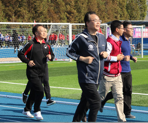 本届运动会新增了健身跑环节,校领导和各学院党政领导代表身先士卒,带领全校师生运动员一同跑动起来,让健康运动的理念深入校园中,我院常务副院长柳永明老师作为代表参加了领跑。