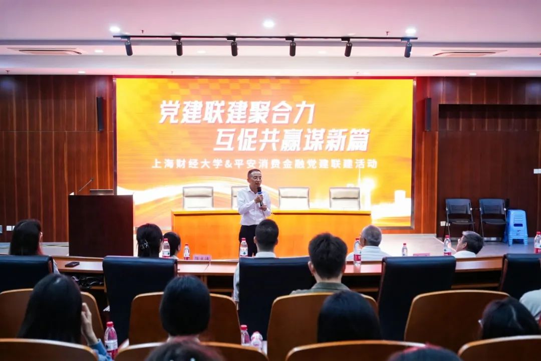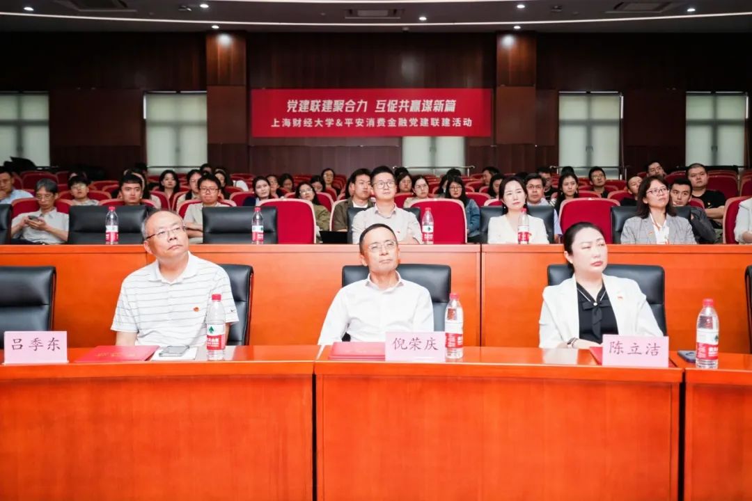为深入学习贯彻党的二十大精神与习近平总书记关于金融工作的重要论述,全面落实中央经济工作会议及中央金融工作会议精神,9月24日,上海财经大学金融学院(以下简称金融学院)携手上海财经大学体育教学部(以下简称体教部)、平安消费金融有限公司(以下简称平安消费金融)共同开展了以“党建联建聚合力,互促共赢谋新篇”为主题的党建联建活动,并商讨长期合作开展三方党建联建共建活动,旨在通过党建引领校企合作,实现资源共享、优势互补、共同发展。平安消费金融总经理倪荣庆、副总经理陈立洁,体教部直属党支部书记吕季东,金融学院党委委员、副院长曹啸出席。金融学院银行系教工党支部书记寸无旷主持会议,各方相关负责人、党员代表出席。