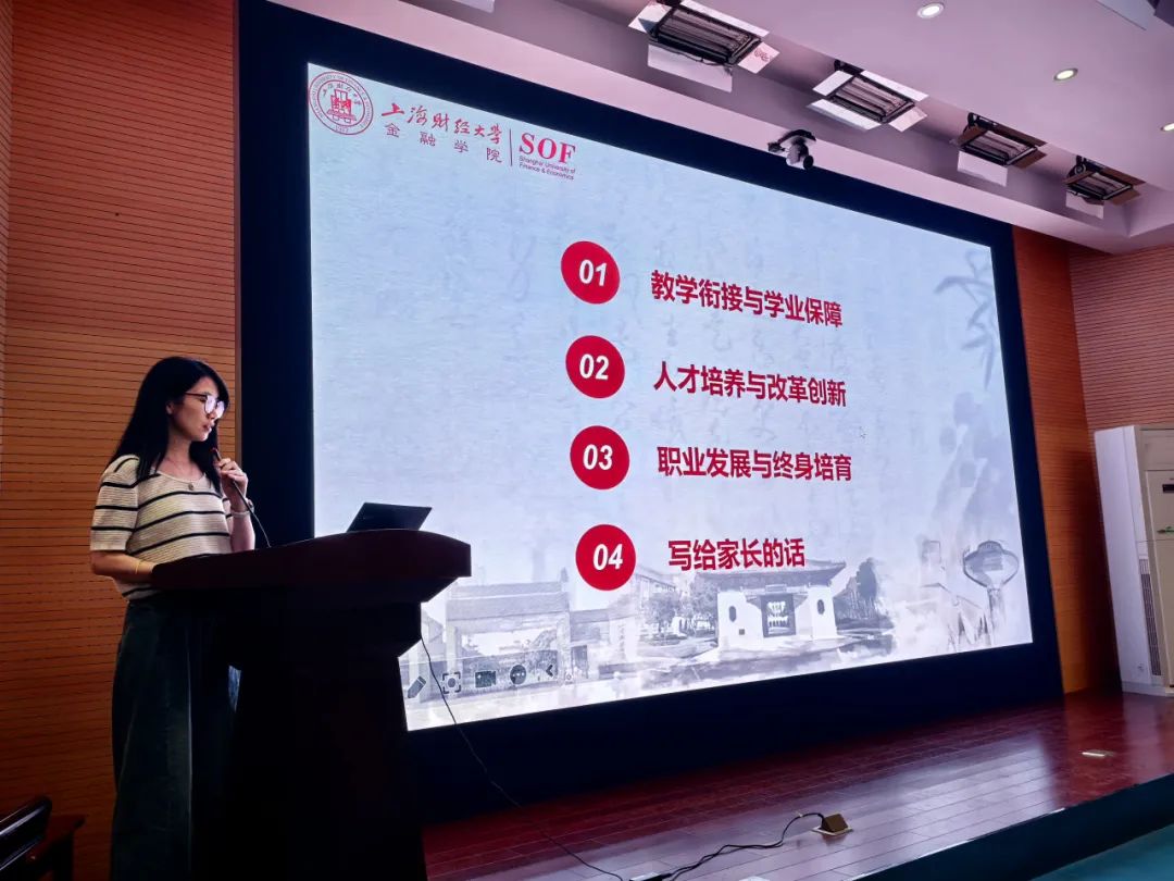 张燕老师首先作上海财经大学招生政策宣讲,她向家长们展示了我校在招生、培养、就业等方面的优势,并对转专业、学校双学位专业等大家关心的问题进行具体介绍。周洁琼老师则通过教学衔接与学业保障、人才培养与改革创新、职业发展与终身培育等三个方面,介绍了金融学院在本科教学方面的概况。宣讲结束后,两位老师就家长们的提问进行了耐心地解答。