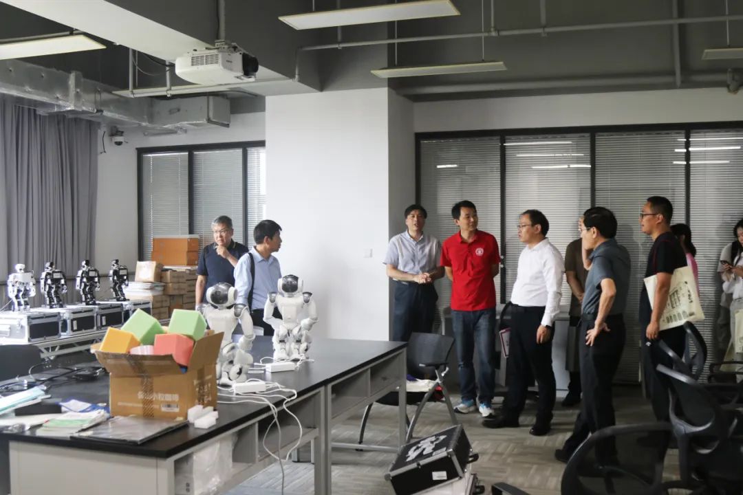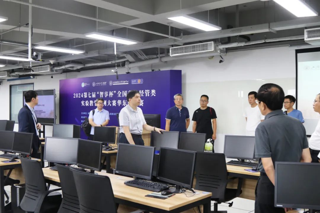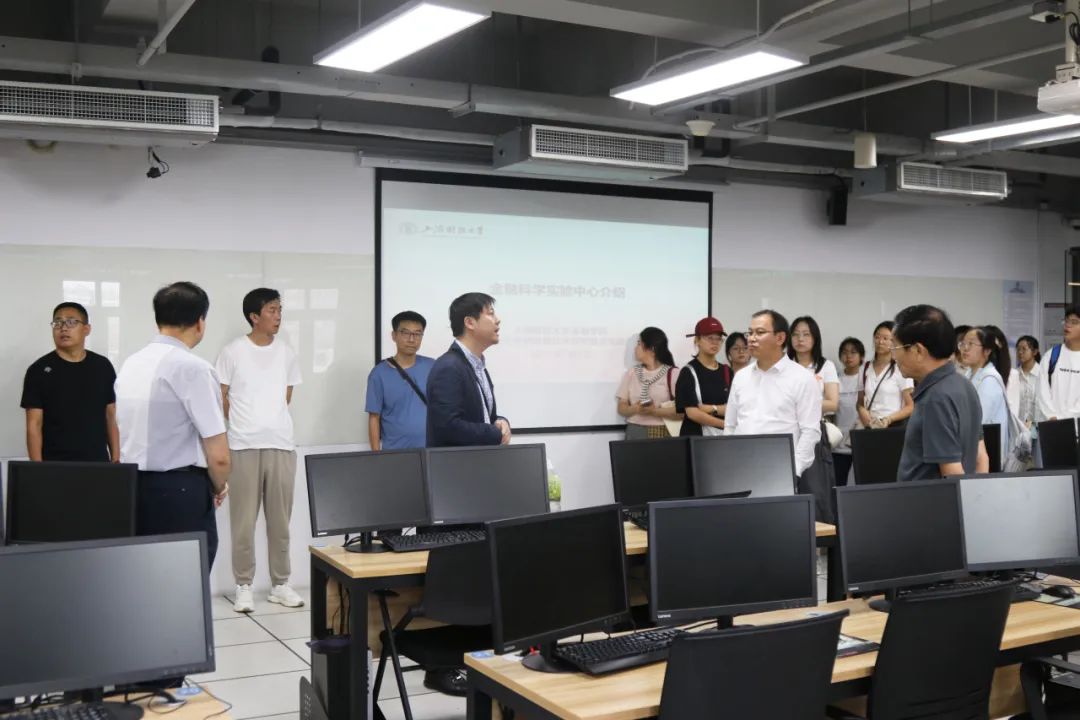 交流会结束后,与会的各位领导老师和同学们前往我校科研实验楼,在上海财经大学实验中心副主任谢斐老师,校实验中心沈林松老师、朱元凯老师,金融学院实验室主任闵敏老师的带领和讲解下,参观了我校金融科学国家级虚拟仿真实验教学中心、经济与管理国家级实验教学示范中心(ERP沙盘实验室、机器人仿真实验空间等)。本次活动圆满结束。