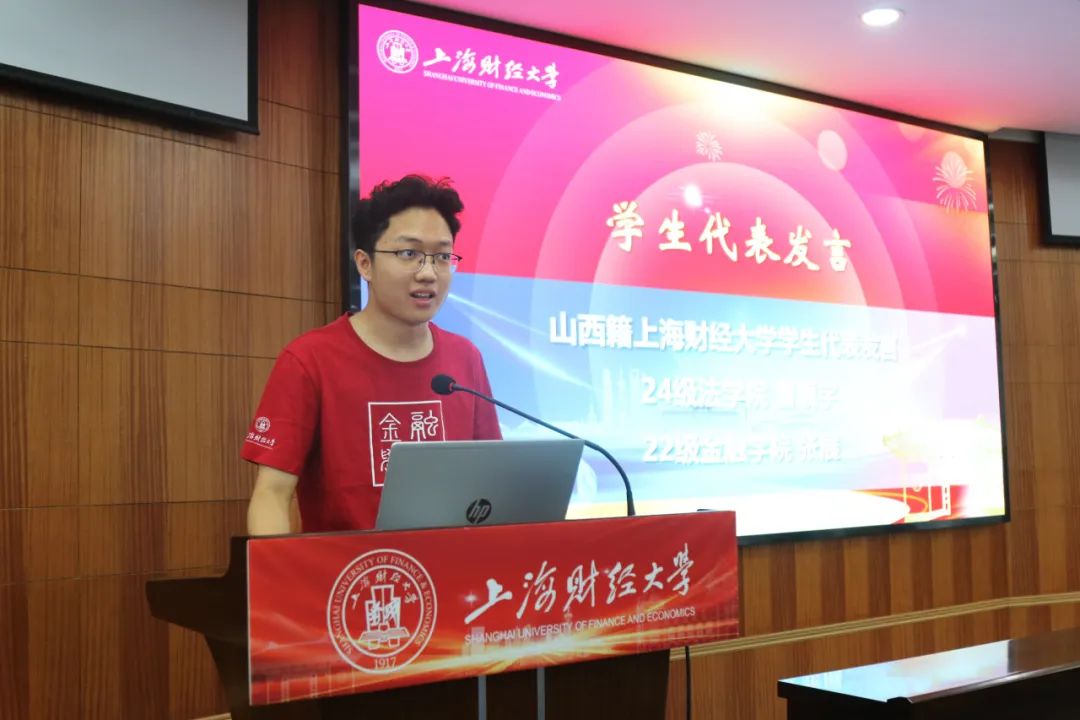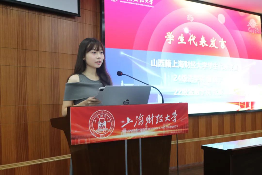 2024级法学院新生曹靓宇同学与2022级金融学院张展同学作为山西籍上海财经大学学生代表发言。