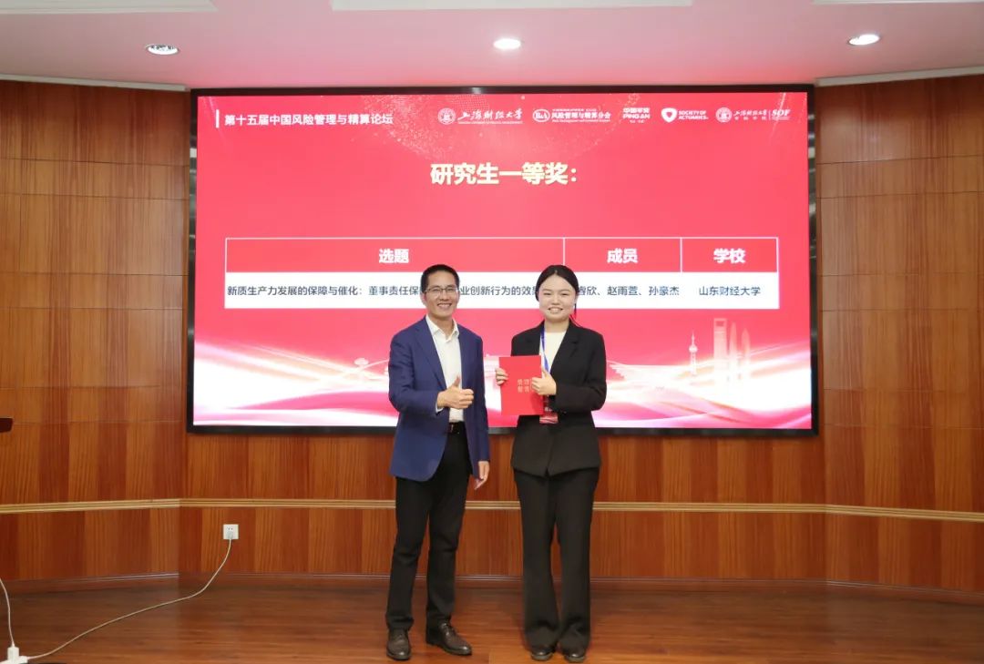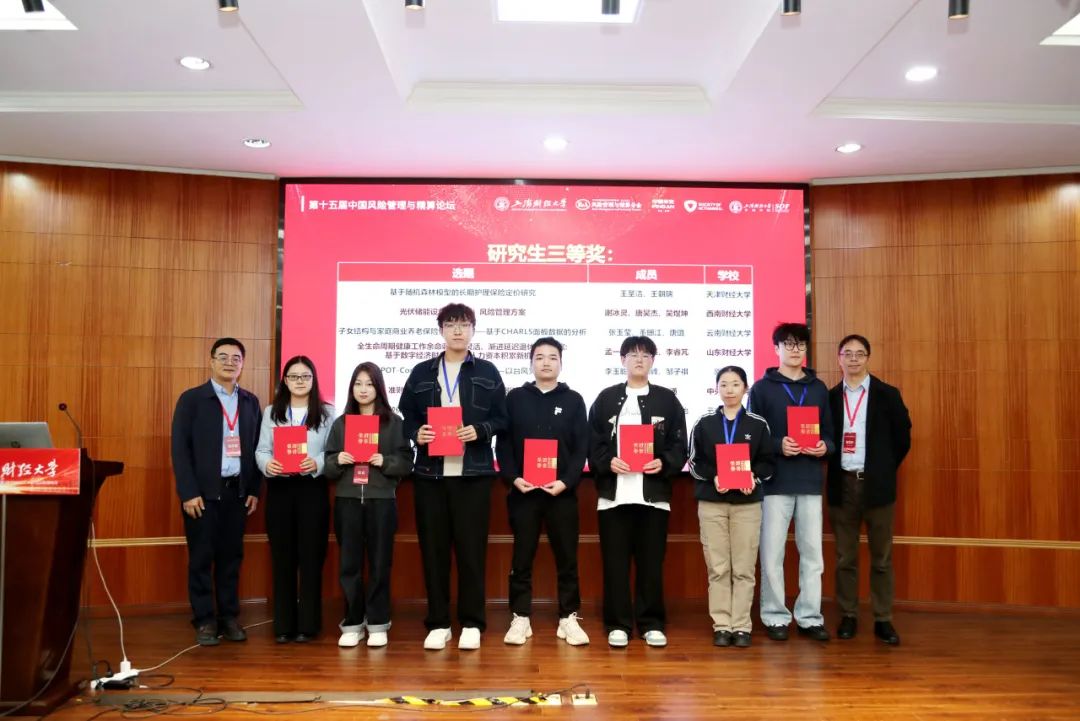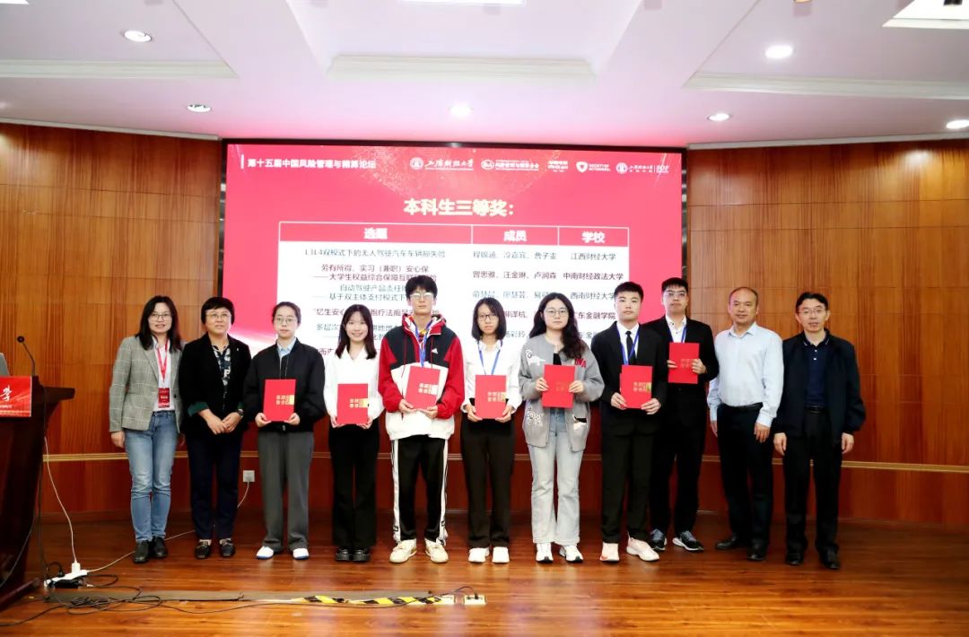 闭幕式上,上海财经大学朱文革教授回顾了上海财经大学保险学科的发展历程,并对未来的学科建设提出了展望。随后,举行了本科生和研究生竞赛的颁奖仪式,表彰了在竞赛中表现出色的学生团队。金融学院党委书记朱小能教授出席了颁奖仪式并为研究生竞赛一等奖颁奖。