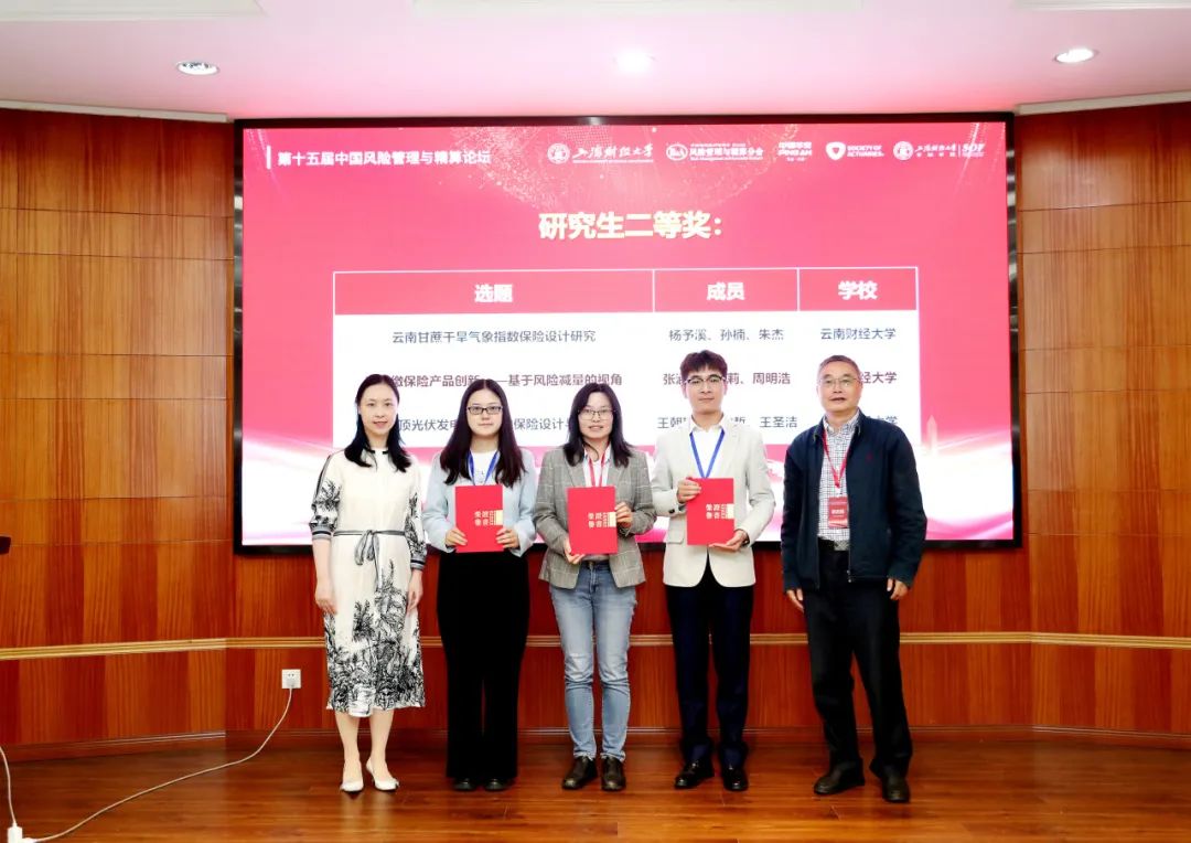 ▲ 谢志刚教授、工银安盛人寿保险公司首席精算师喻凌燕颁发研究生组二等奖