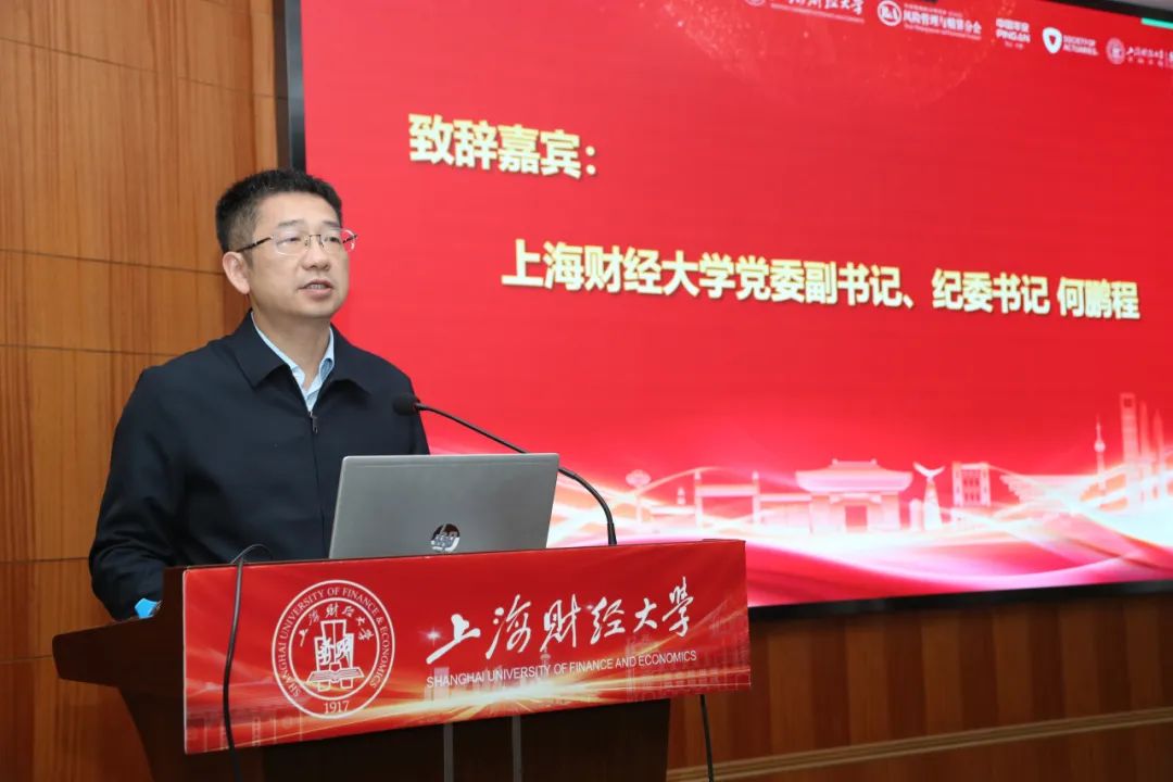 校党委副书记、纪委书记何鹏程在致辞中介绍,上海财经大学遵循“扎根中国、放眼世界、立德树人、追求卓越”的办学理念,秉承“厚德博学,经济匡时”的校训,以独特的历史传承和鲜明的办学特色,于2017年步入“双一流”建设高校行列,并在全国第五轮学科评估中获得优异成绩。他强调了保险业在国家经济安全和社会稳定中的重要作用,以及当前经济形势和科技进步为风险管理和精算领域带来的挑战与机遇,希望通过此次活动,激发更多思想的火花,推动相关领域的创新与发展,同时探索产学研结合的新模式,为企业培养输送更多优秀人才。
