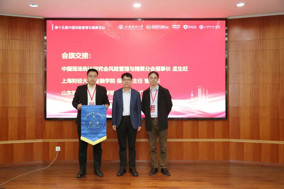 最后,中国现场统计研究会风险管理与精算分会理事长孟生旺教授、上海财经大学金融学院保险系主任曾旭东教授、山东财经大学保险学院院长于文广教授进行了会旗交接仪式,宣布第十六届论坛将由山东财经大学承办。上海财经大学粟芳教授主持了闭幕式。