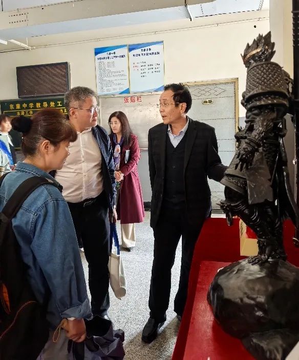 我校招生组抵达东康中学后,举行“英才班培养共建基地”授牌仪式,东康中学党支部书记、东康中学校长张新民、东康中学校长助理李爱华、东康中学教导处主任董明军、东康中学政教处主任任丽萍、东康中学课研处主任王芳玲、东康中学英才办公室主任孙春燕参加授牌仪式和座谈会。