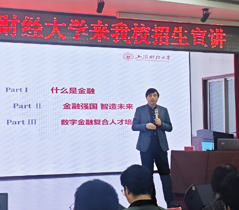 随后,谢斐教授以《金融强国 智造未来》为主题,为高三两百多学生带去了一场精彩讲座。谢教授深入浅出地介绍了金融工具在实际生活中的应用,并鼓励学生从日常生活中了解金融知识,最后与多名高三学生进行了互动答疑,针对学生关心的问题进行了详细解答。