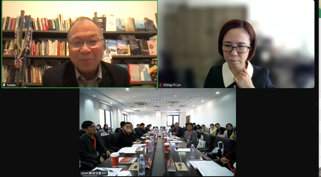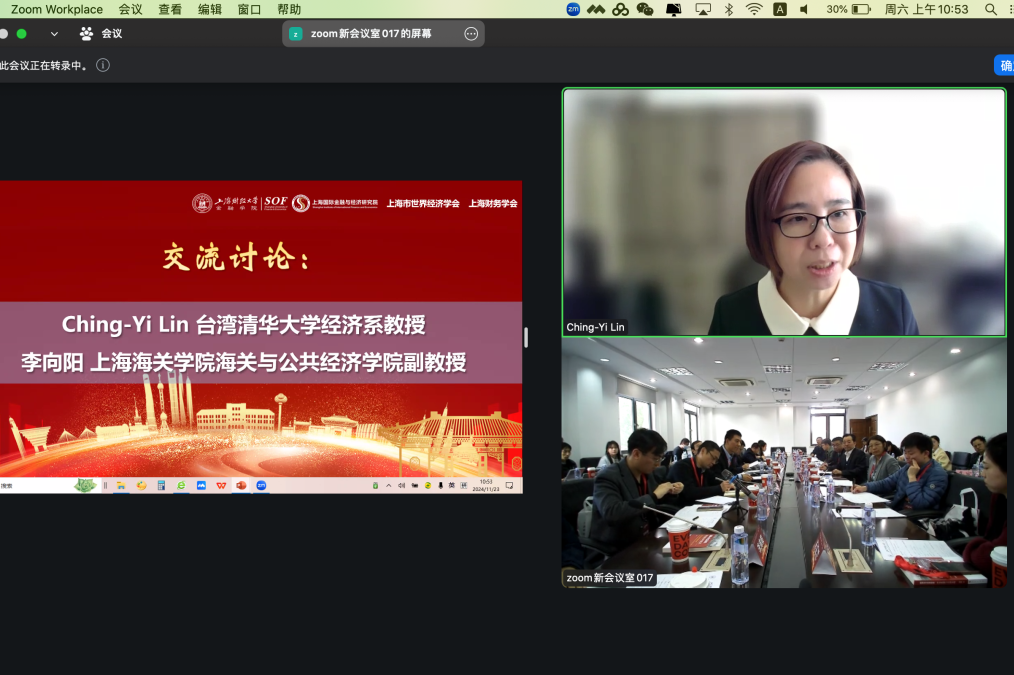 清华大学经济管理学院高峰教授、吉林大学经济学院冯永琦教授分别作主题为“欧盟碳衍生品市场信息效率研究”及“数字化无形资本是否提升了企业出口技术复杂度”的报告。台湾清华大学经济系Ching-Yi Lin教授、上海海关学院海关与公共经济学院李向阳副教授进行点评。