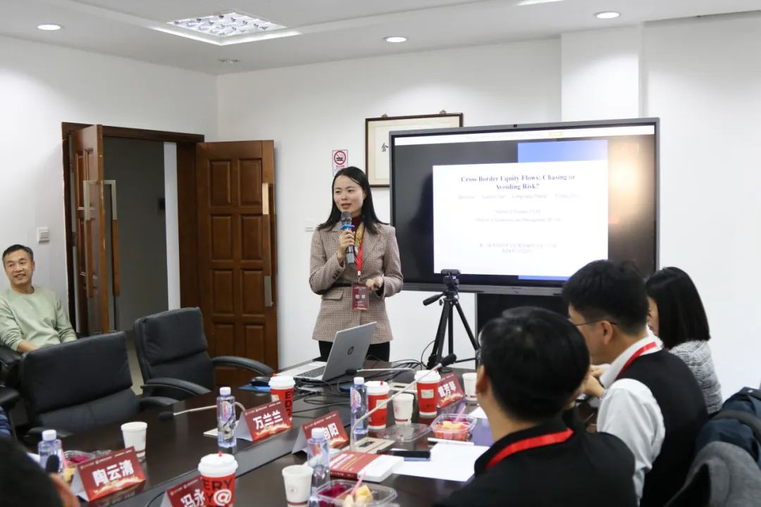 中央财经大学金融学院苟琴教授、上海财经大学金融学院李江远副教授分别作主题为“Cross-Border Equity Flows:Chasing or Avoiding Tail Risk”及“Short-Horizon Currency Expectations”的报告。上海财经大学金融学院周正怡副教授、上海财经大学金融学院王龑楚副教授进行点评。