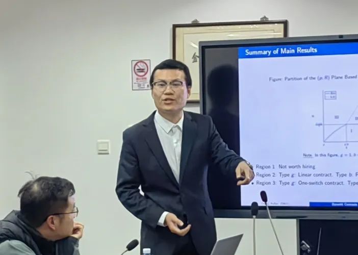 2024年12月10日,杜克昆山大学经济学助理教授章非凡博士应邀为金融学院师生们带来了主题为“Funding the Real Deal--Dynamic Moral Hazard with Adverse Selection”(投资真正有价值的项目——动态道德风险与逆向选择下的合约设计)的报告。该研究探讨了如何通过精心设计的动态合同激励代理人在不确定环境中增加突破性成果的发生率,同时有效应对了因代理人努力程度和成本作为私人信息而导致的道德风险和逆向选择问题。讲座活动由金融学院余方圆老师主持。