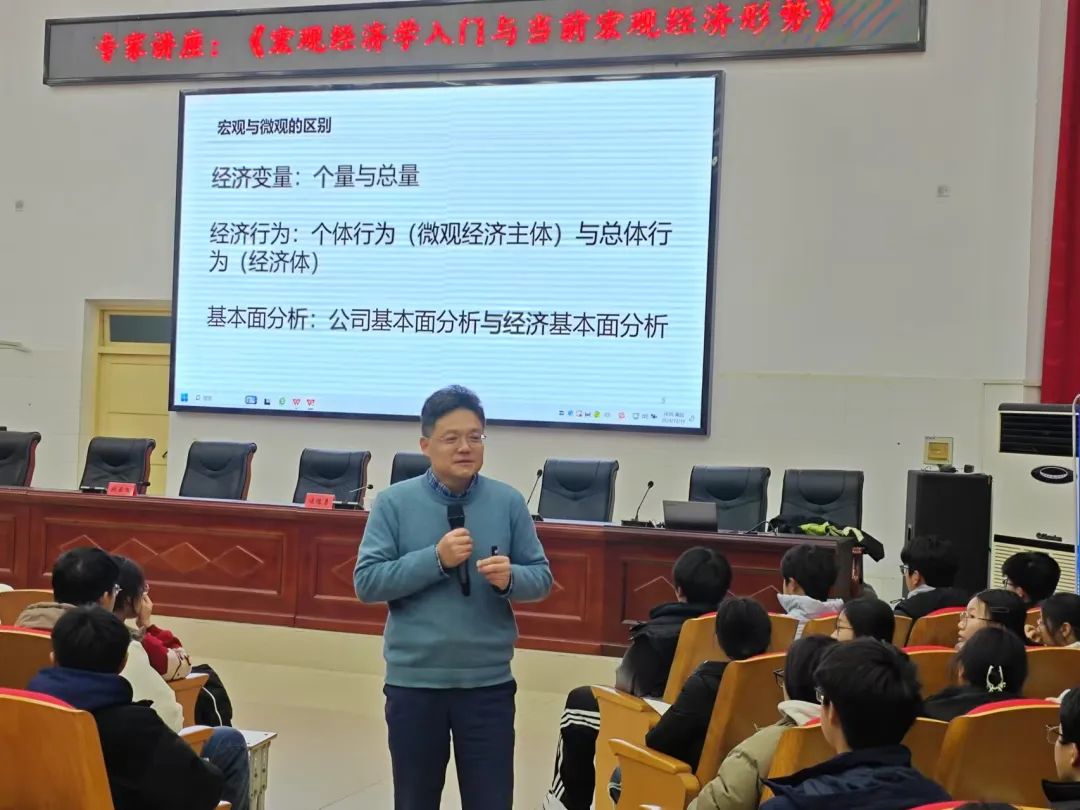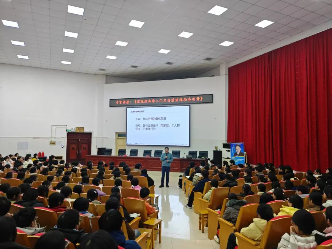为了帮助高中生在学习中融入对财经知识的理解,激发学生对财经专业的兴趣和向往,谈儒勇老师为毛坦厂中学的六百多位实验班同学带来了一场“宏观经济学入门与当前宏观经济形势”的专业讲座。他以“经济”即为“经世济国”为引,从宏观和微观两个层面引导学生理解经济学研究的主要问题,似巧匠引丝线,串联起经济增长、失业与通胀等经济学概念,为同学们理解经济学带来了拨云见日的精彩启蒙。