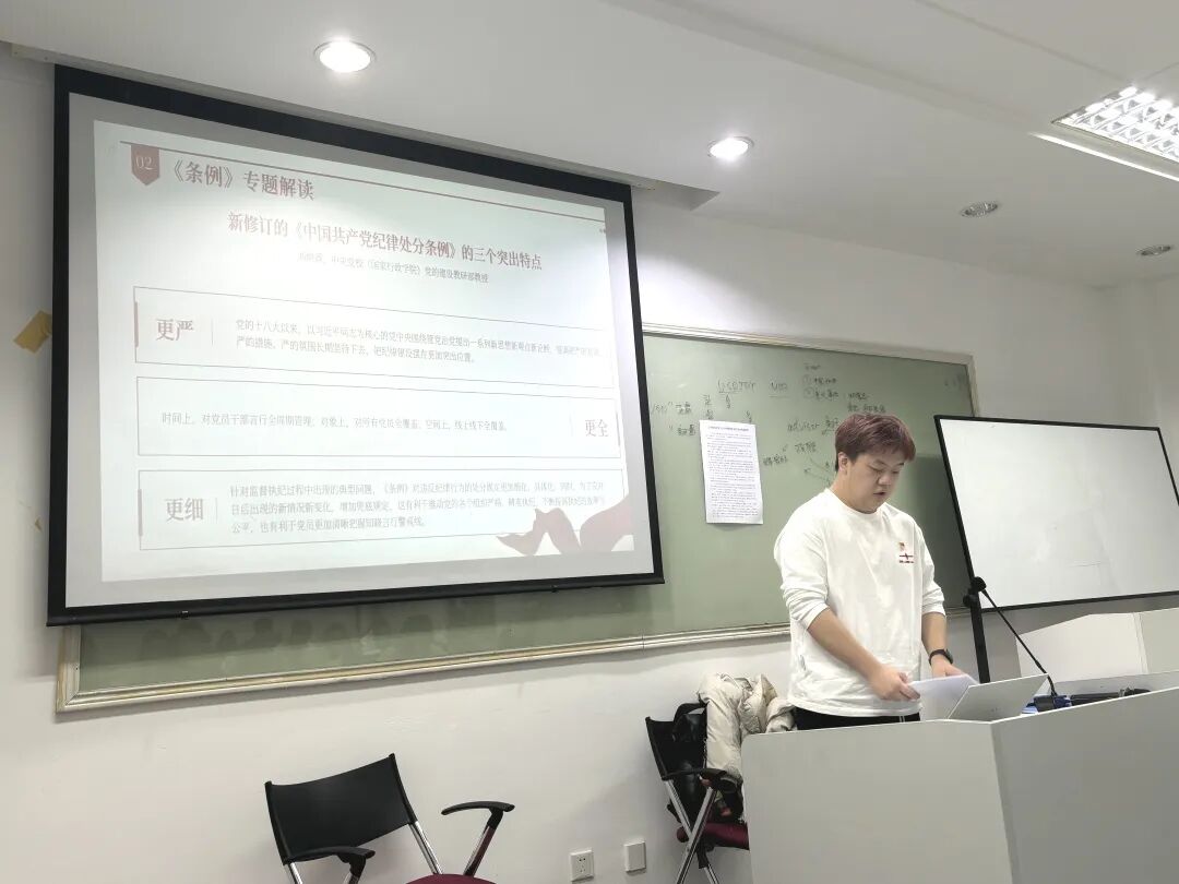 支部书记李相全同志带领全体党员再次学习了新修订的《中国共产党纪律处分条例》,通过专题视频等形式学习新修订《条例》的总体要求和适用范围,把握新修订《条例》的突出特点和重要意义。