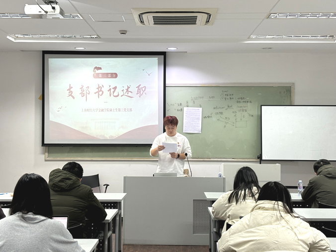 支部书记李相全同志代表硕士生第三党支部支部委员会,向与会全体党员进行工作汇报,总结上一年度支部工作,查摆问题情况,并对下一年度的工作进行了具体的规划与展望。在上级党组织的领导下,金融学院硕士生第三党支部作为2024年9月新换届的新生党支部,在一个学期中有序完成了入党积极分子培养、党员发展转正、组织生活、专题学习、党建联建等各项工作任务。
