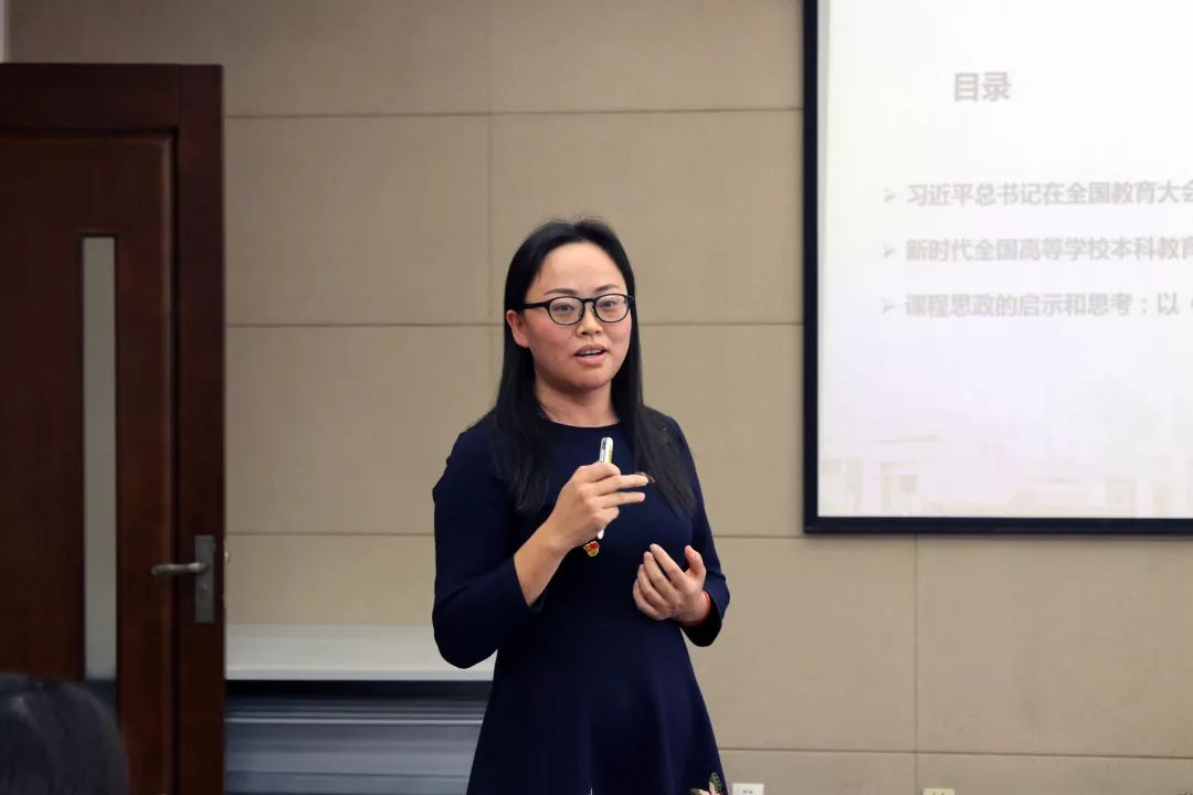 刘莉亚书记结合自己的学习体会与典型事例,全面、准确地传达了习近平总书记在全国教育大会上的重要讲话精神,解读了新时代全国高等学校本科教育工作会议精神,并以《有机化学》课程为例谈了课程思政带来的启示和思考。