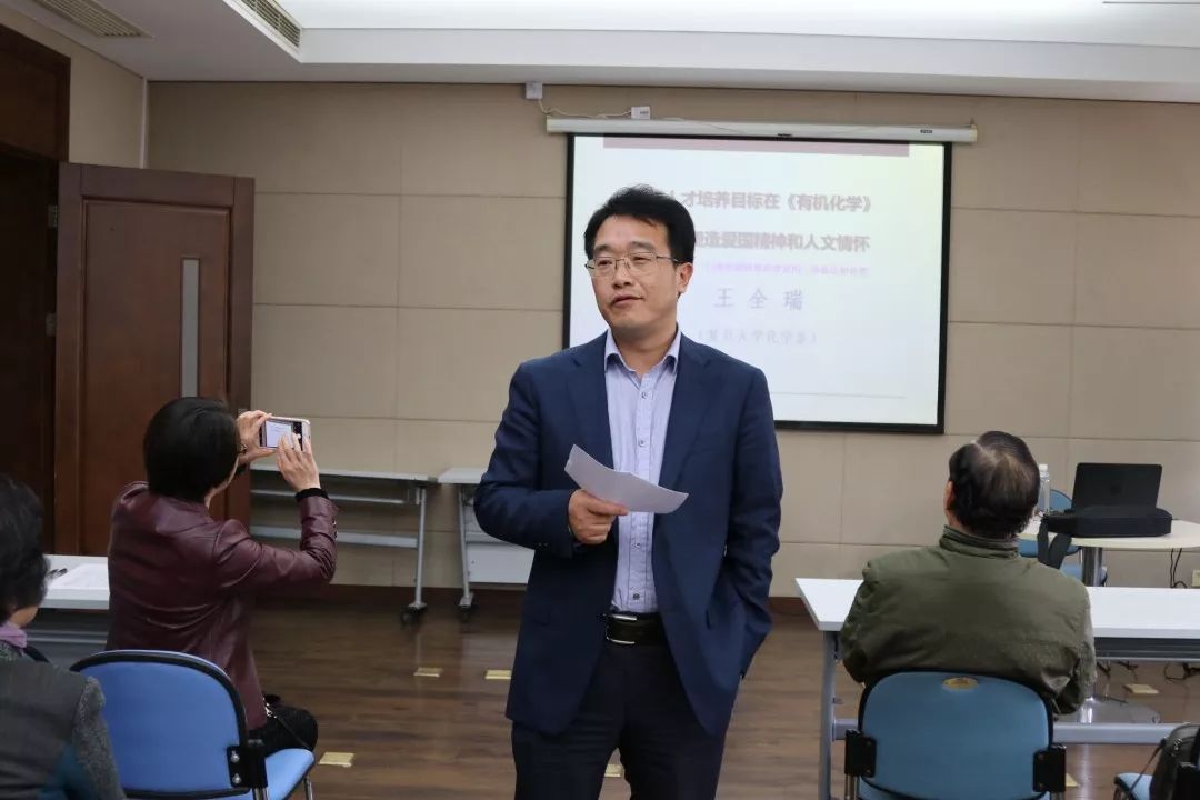 2018年11月27日下午在毓秀楼206,金融学院党委邀请复旦大学教学名师王全瑞教授,做了题为“围绕人才培养目标,在《有机化学》课程中塑造爱国情怀和人文情怀”的专题报告,探讨课程思政。全院教师参与此次活动,活动由金融学院党委副书记、常务副院长柳永明主持。