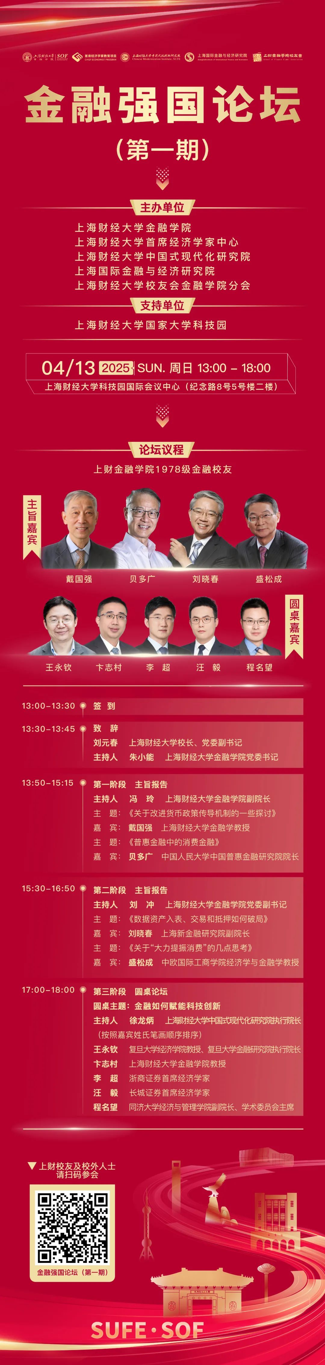 “第一期金融强国论坛”应运而生,由上海财经大学金融学院携智库研究院共同举办,旨在汇聚业内知名经济金融学家与杰出金融校友,共同围绕金融强国建设关键议题,深入剖析金融在 “五篇大文章” 中的独特优势与发力方向。在科技金融方面,积极探索金融如何为科技创新注入强劲动力;于绿色金融领域,深入研讨怎样引导资金流向绿色产业。通过理论与实践的深度融合,力求为金融强国建设开辟新路径。