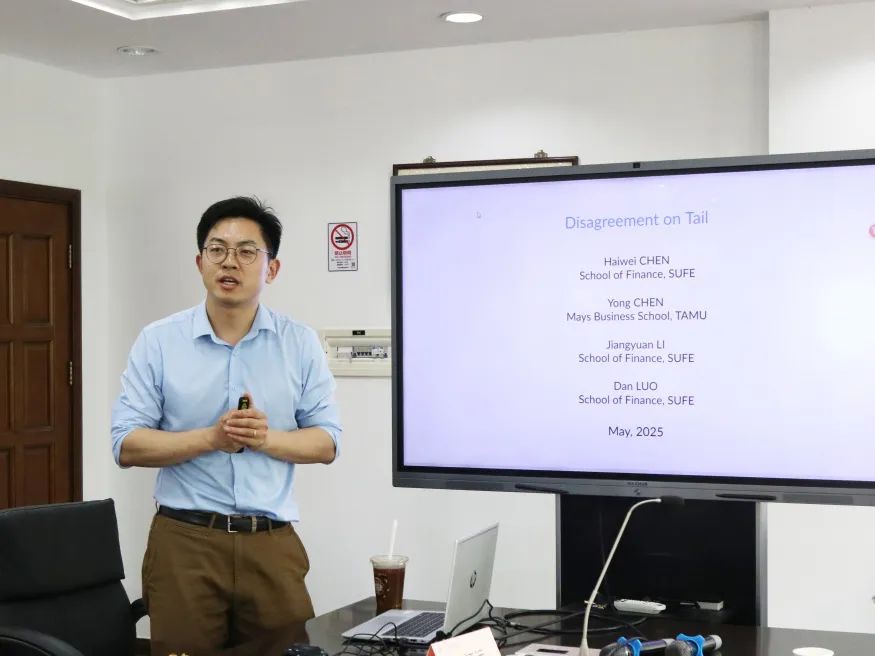 上海财经大学李江远助教授带来《Disagreement on Tail》的主题报告。研究聚焦于尾部风险的分歧问题,通过标准差构建“尾部风险分歧指标”(DOT)发现,DOT高的投资组合收益率显著低于分歧低的组合,且尾部风险分歧在危机期间占整体市场分歧的20%以上,显示尾部事件虽概率低但引发的分歧巨大且持久。为理解金融市场中的尾部风险认知差异提供了新视角。