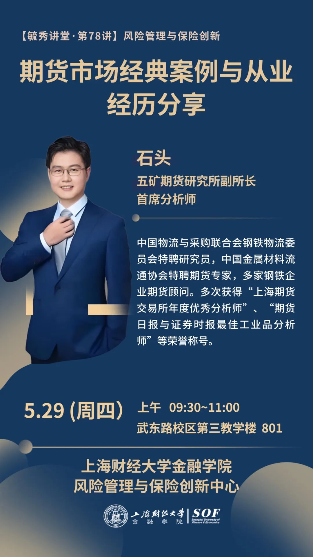 毓秀讲堂 |【讲座预告】第78讲 “期货市场经典案例与从业经历分享”(石头)