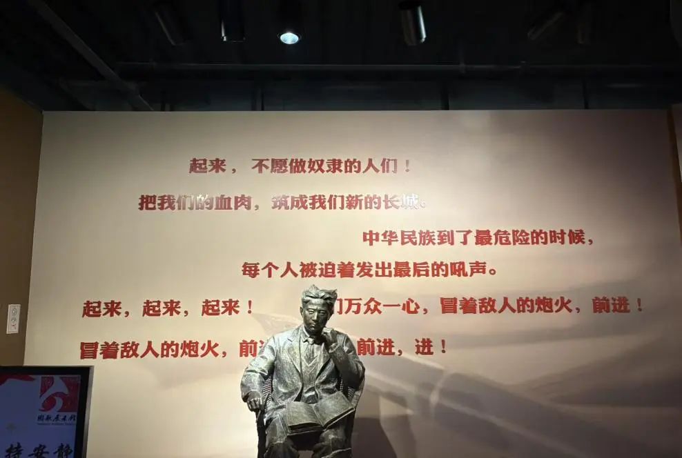 位于上海市杨浦区的国歌展示馆,以《义勇军进行曲》的诞生、传播和影响为主线,通过丰富的历史文物、影像资料和互动体验,生动展现了国歌所承载的民族精神与时代力量。在讲解员老师的带领下,支部的成员深入了解了国歌的创作背景、词曲作者聂耳与田汉的革命情怀,以及国歌在新中国成立和发展历程中的重要意义,丰富了同学们的历史知识,更加坚定了入党的信念。
