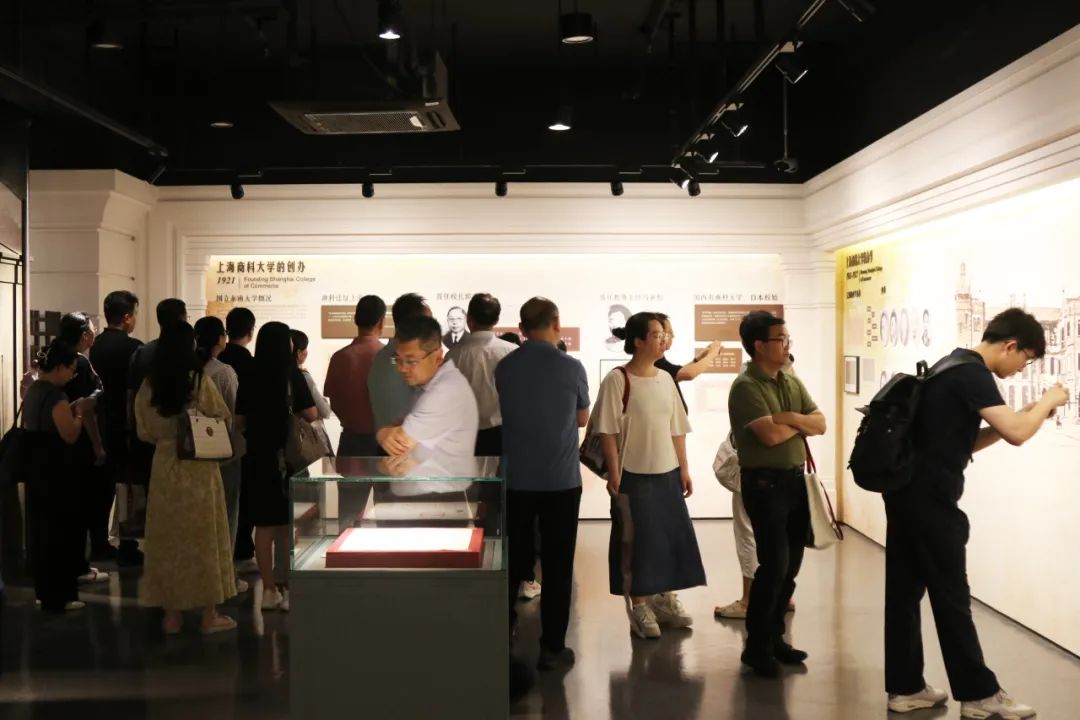 下午,参会教师参观了校实验中心,实地体验了上财的学科魅力与历史底蕴。实验中心大楼里,在谢斐老师的引导下,前沿的数字金融实验平台与智能教学设备,让教师们直观感受学校在金融科技领域的教学与科研实力,进一步加深了对高校人才培养场景的理解。校史馆中,通过商学博物馆讲解员杜越老师的悉心讲解,百年校史脉络与财经教育传承娓娓道来,展现了上财“厚德博学、经济匡时”的精神内核。