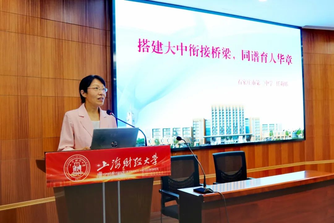 河北石家庄市二中任莉娜老师介绍了石家庄二中与上海财经大学的合作历程,凸显了两校在大中衔接人才培养上的紧密联系。她提到,许多石家庄二中的优秀毕业生在上海财经大学深造并取得优异成绩,这些成功案例展示了高中与高校合作的重要性,希望未来两校进一步加强合作,共同探索贯通式的人才培养模式,为学子们提供系统、全面的发展平台。