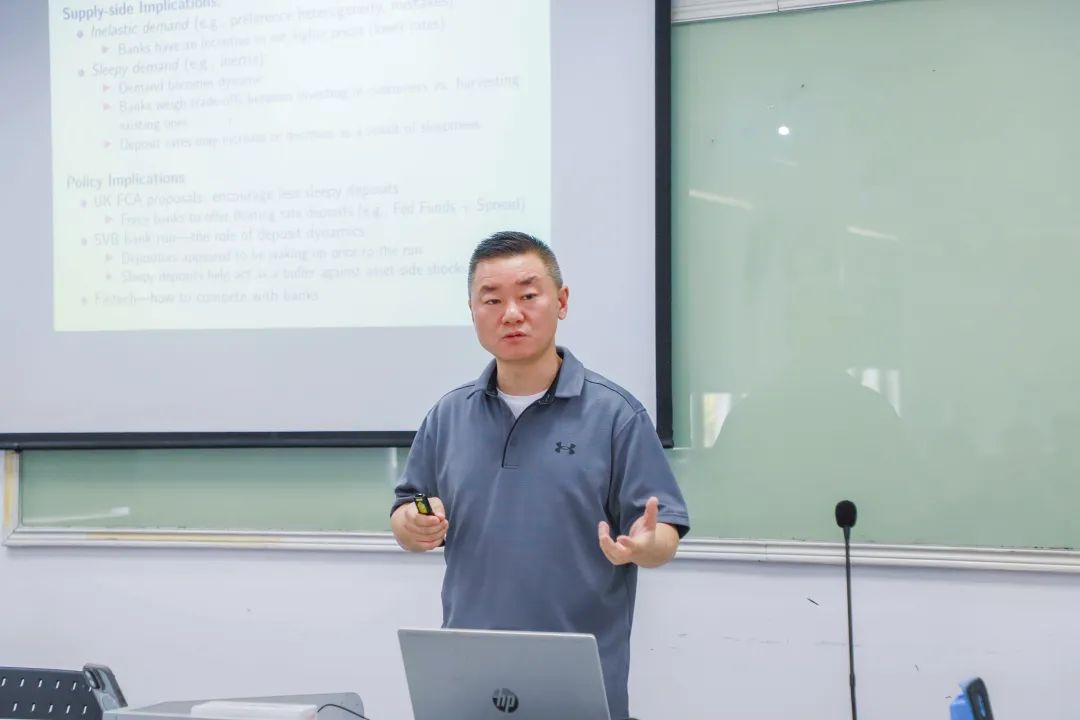 来自美国佐治亚州立大学商学院的姚文雄教授应邀为研讨会带来主题为《Sleepy Deposits》的主旨报告。他从金融科技与传统银行业竞争切入,结合硅谷银行因加息导致债券账面亏损引发挤兑的美国银行业危机案例,指出储蓄存款(deposit)的休眠状态对银行生存扮演着至关重要的角色。