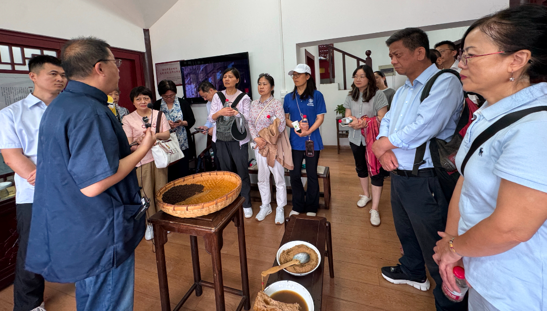 6月14日清晨,校友们早早集合在人民广场,时隔多年的笑靥与拥抱在晨光中绽放。启程大巴上,铂金合唱团即兴唱响由已故78级财政校友音乐才子保宪森亲自作词作曲的 《上财学子之歌》,车轮转动间尽是同心同行。上午10点整,校友大巴行驶抵达百年药号雷允上沐泰山堂,与自驾、高铁抵苏的校友汇合。校友们受到了雷允上集团公司副总张大强校友的热情接待。张总向校友们介绍了雷允上在经典传承及工艺创新方面的卓越实践,大健康小组与张总交流探讨了中医药制药、诊疗、流通等环节的现状和未来发展趋势。校友们实地考察了该门店的运营模式,其一层设置中西药销售专区,二层打造名中医坐诊平台,聚集多名中医专家提供“把脉开方-现场抓药-代煎代送”一体化服务。在非遗展示环节,非遗传承人现场演示了传统丸剂制作工艺,强调从药材甄选、制作流程到成品包装,每一环节都需严格遵循古法,校友们兴致盎然地体验起了泛丸非遗技艺。随后,中医专家为校友把脉析象,交流健康养生心得,中医药智慧与现代健康管理的对话在交流中达成共识。