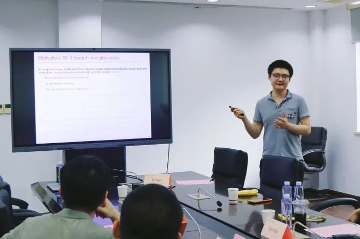 研讨会进入论文交流环节,来自两校的学者共带来8篇高质量学术报告,分为两个阶段进行汇报。上海财经大学王龑楚副教授、张蒙博助教授分别主持。