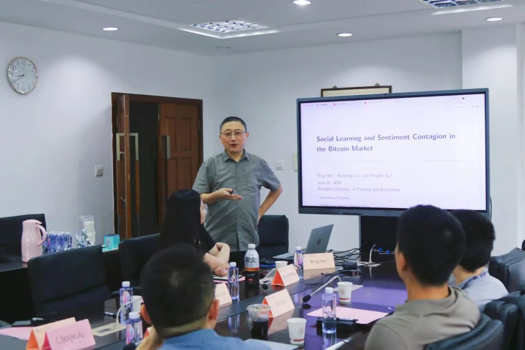 多伦多大学罗特曼管理学院的韩冰教授带来了题为“Social Learning and Sentiment Contagion in the Bitcoin Market(比特币市场中的社交学习与情绪传染)”的主旨分享。他深入探讨了比特币市场中的社会学习机制和情绪传染现象,通过分析比特币论坛的用户互动数据,发现投资者的信念更新会受到社交网络中其他参与者观点的显著影响,这种影响在市场不确定性较高时更为明显。