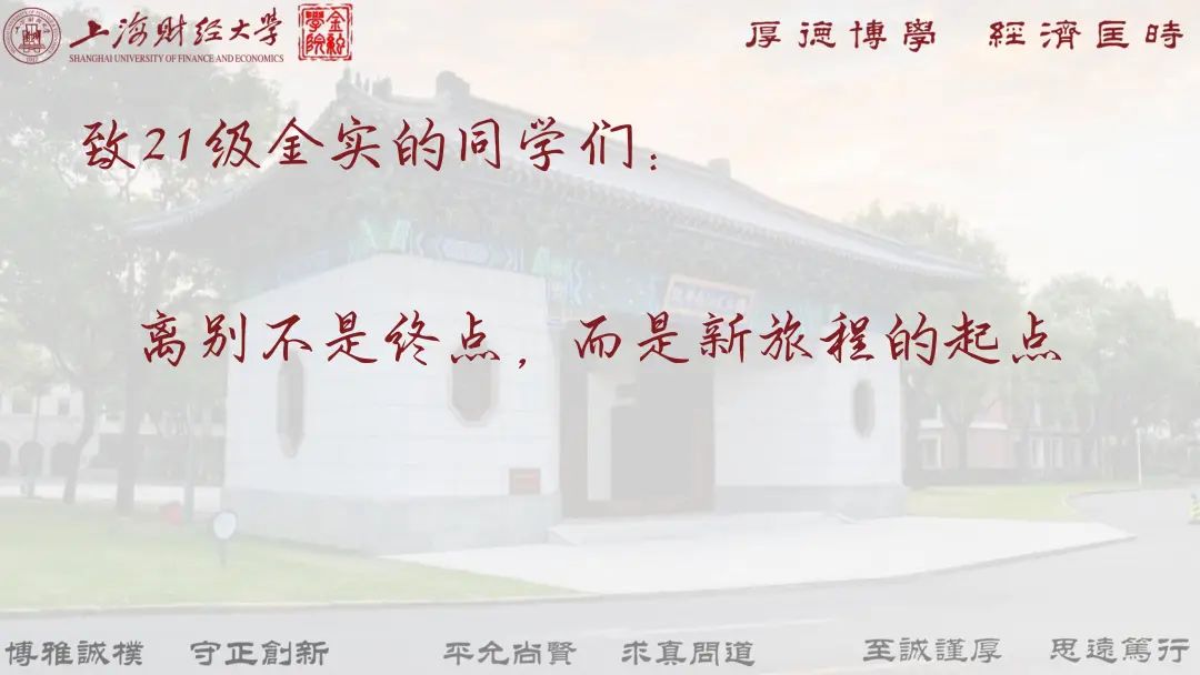 锦瑟年华灵毓秀,不负韶光不负己。祝愿2025届金融学子在强国追梦的新时代里,在未来无限的人生舞台上,继承和发扬“厚德博学,经济匡时”的校训精神,展现上财金融人的情怀和担当,以新时代追梦人的姿态和干劲,坚守理想初心,矢志砥砺奋斗,让青春在拼搏中熠熠发光,奋力书写为中国式现代化挺膺担当的青春篇章!祝福大家前程似锦,未来可期!